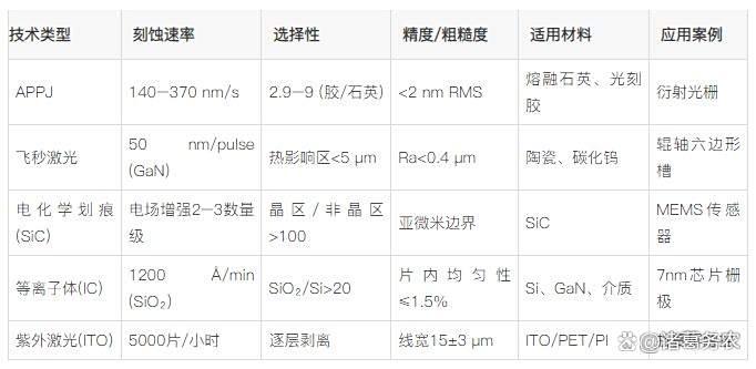 大气压等离子体(APPJ):非真空环境刻蚀光刻胶,能耗降低90%,速率达140–370 nm/s。