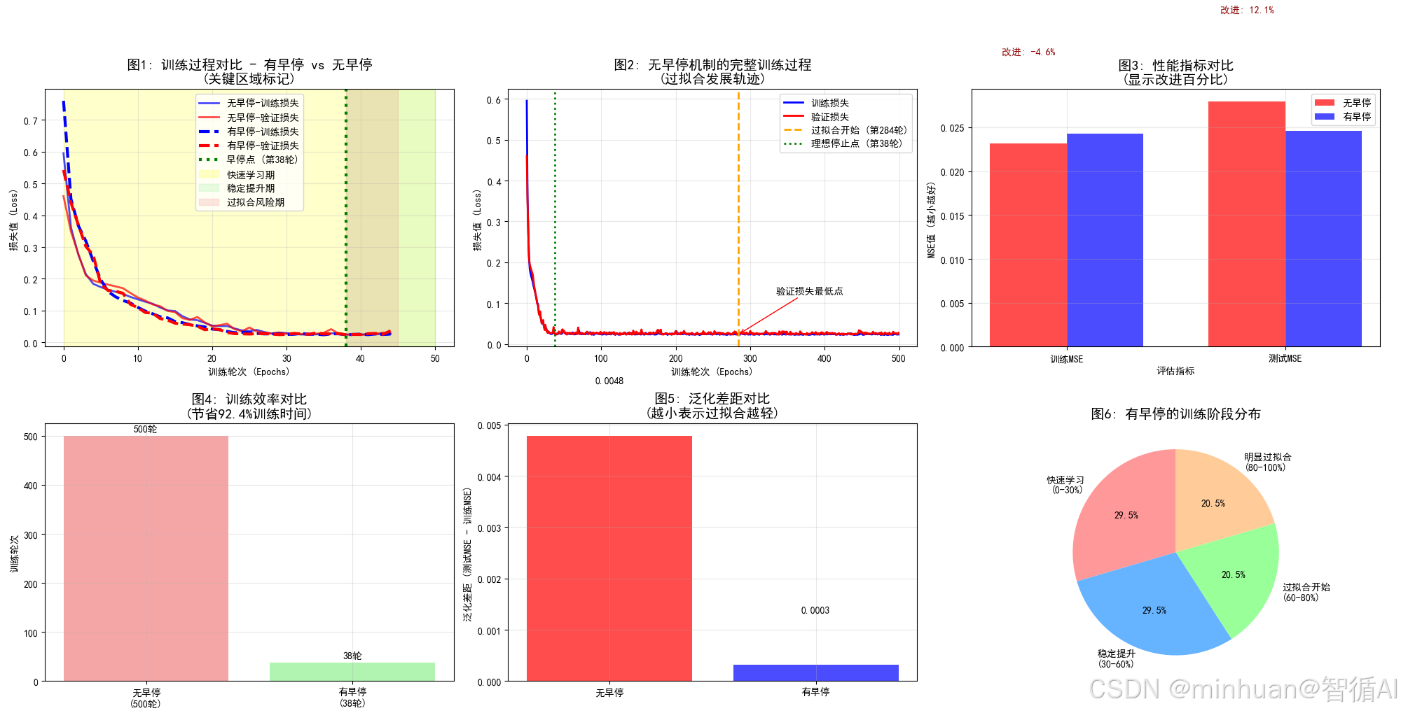 - 可视化训练过程和预测结果有助于理解模型的行为和早停机制的效果。