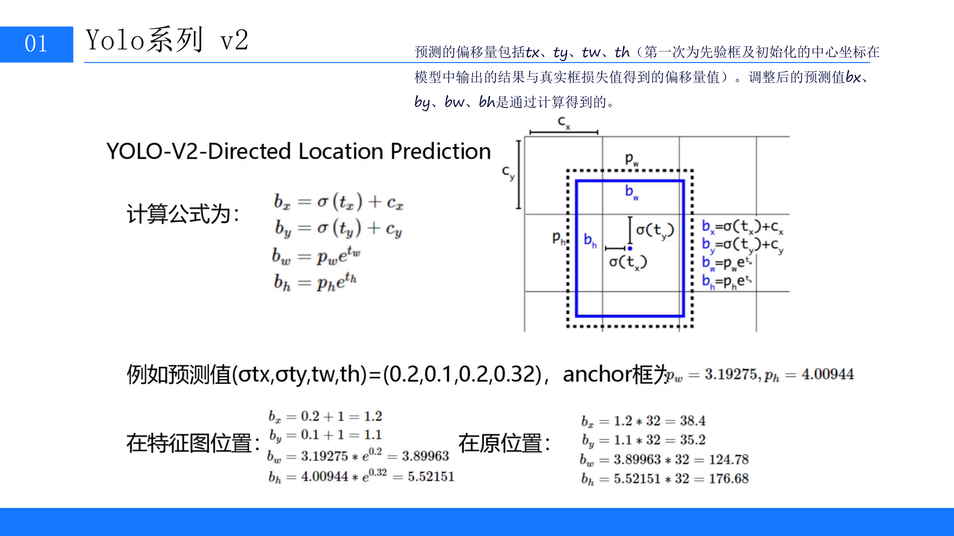 是网格左上角的坐标。这意味着边界框的中心点被限制在当前的网格单元内进行微调,而不会发生大幅度跳跃。宽高预测:使用指数函数预测宽高的缩放比例