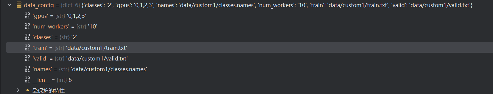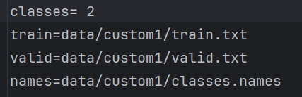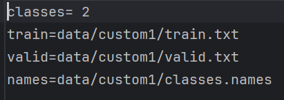 其中有数据的类别数,train和valid的地址,还有类名。