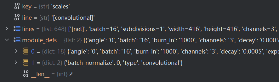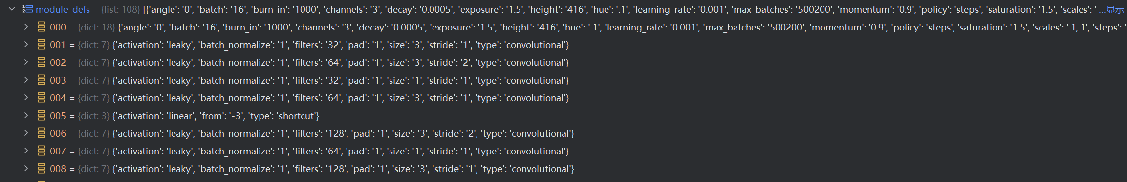 前面我们对每一层都变成了一个字典,然后现在我们只要对列表中的字典进行读取,然后看其中的module_def["type"]是什么,然后进行搭建网络。