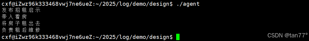 public:void rentHouse(){std::cout << "发布招租启示" << std::endl;std::cout << "带入看房" << std::endl;// 只有将房子租出去是由房东负责,其余均由中介负责_landlord.rentHouse();std::cout << "负责租后维修" << std::endl;}