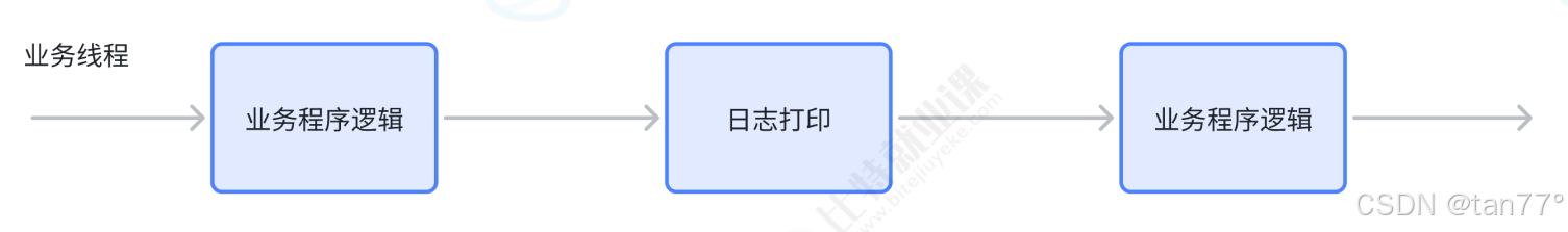 同步日志是指当输出日志时,必须等待日志输出语句执行完毕后,才能执行后面的业务逻辑语句,日志输出语句与程序的业务逻辑语句将在同一个线程运行。每次调用一次打印日志API就对应一次系统调用write写日志文件。