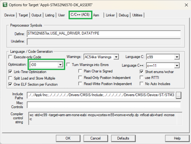 由于原有的应用设置中使用-O3进行了编译优化,为了设置断点方便演示,我们将该 选项改为了-O0,如下图2所示。该步骤并非必须。