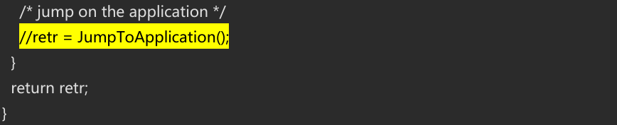 用KEIL打开STM32N6570-DK\Templates\Template_FSBL_XIP 工程。我们首先修 改一下FSBL工程,正常情况下FSBL 在配置好XIP模式后,会跳转到Application, 我们 这里屏蔽跳转,仅做配置与内存映射。具体修改需要修改ST Middlewares 中的 STM32_ExtMem_Manager 中的stm32_boot_xip.c 文件,具体如下: