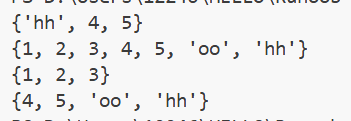 print(set1); #注意,直接添加字符串,和通过列表添加字符串,在集合内的显示形式是不一样的 。