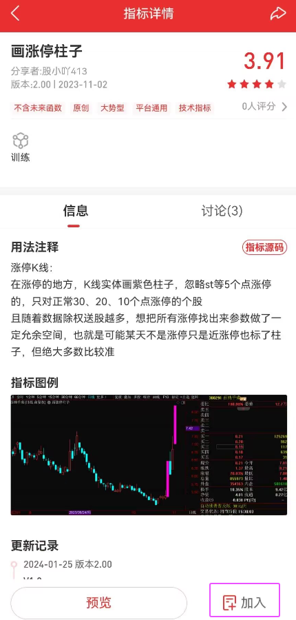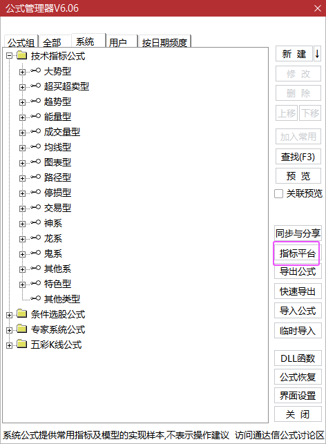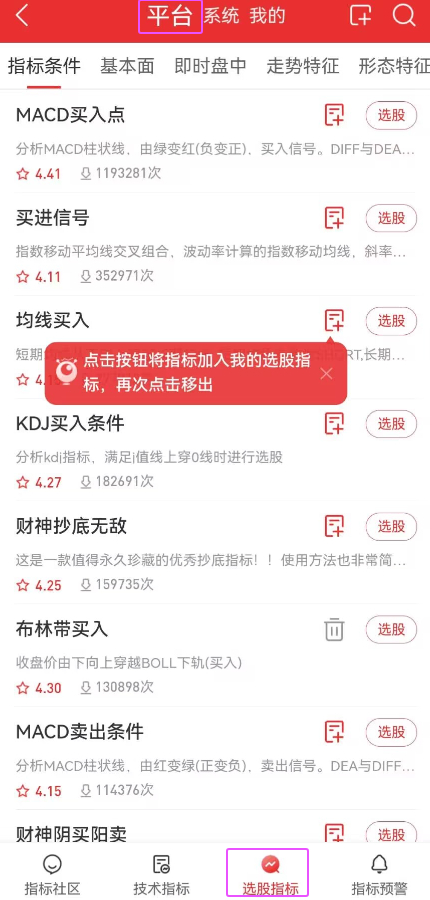 APP,查看平台-技术指标公式,点击各公式进入公式介绍界面,再在下方点击添加,查看指标就会自动加入到个股k线界面。如果是选股公式可以直接进行选股。