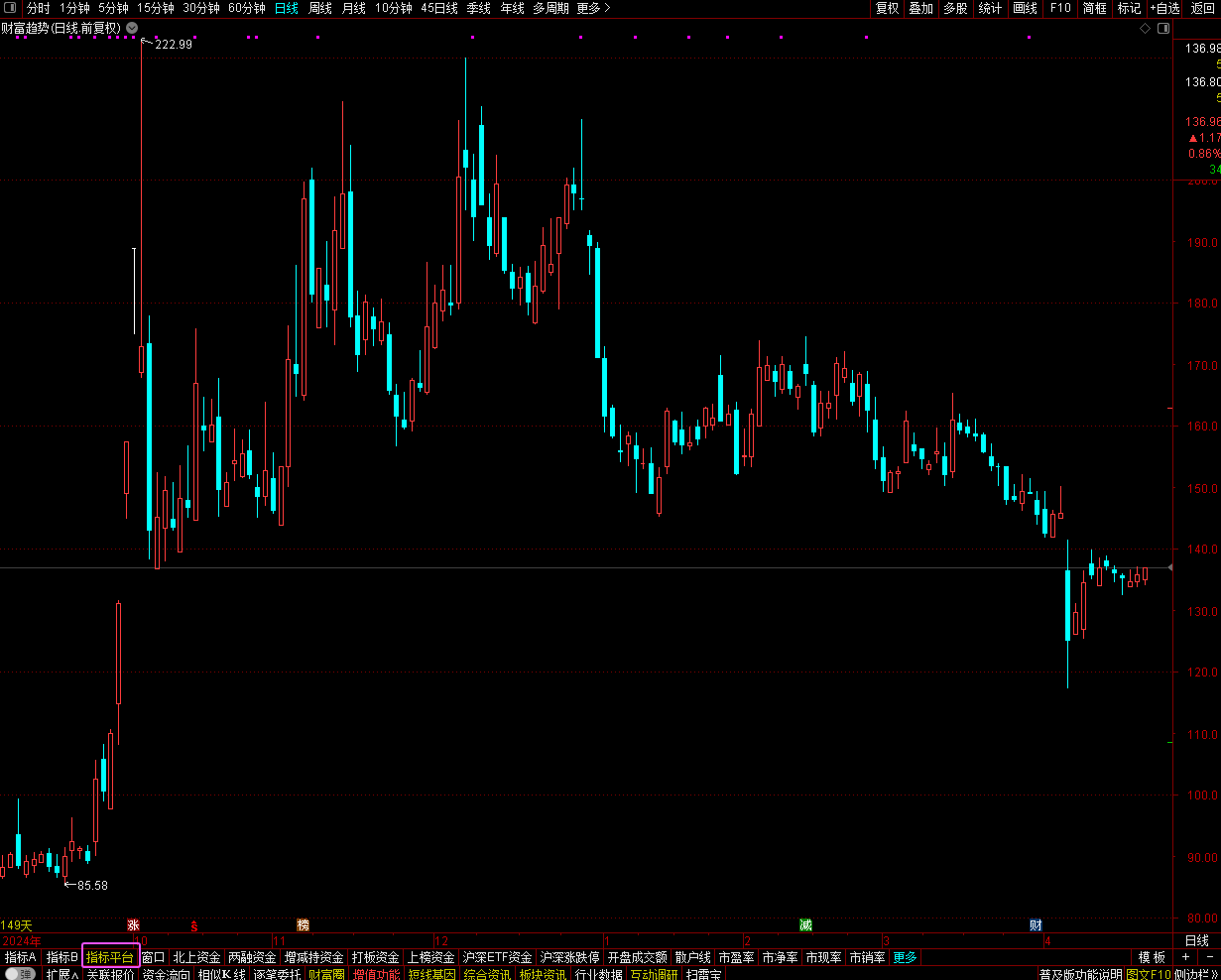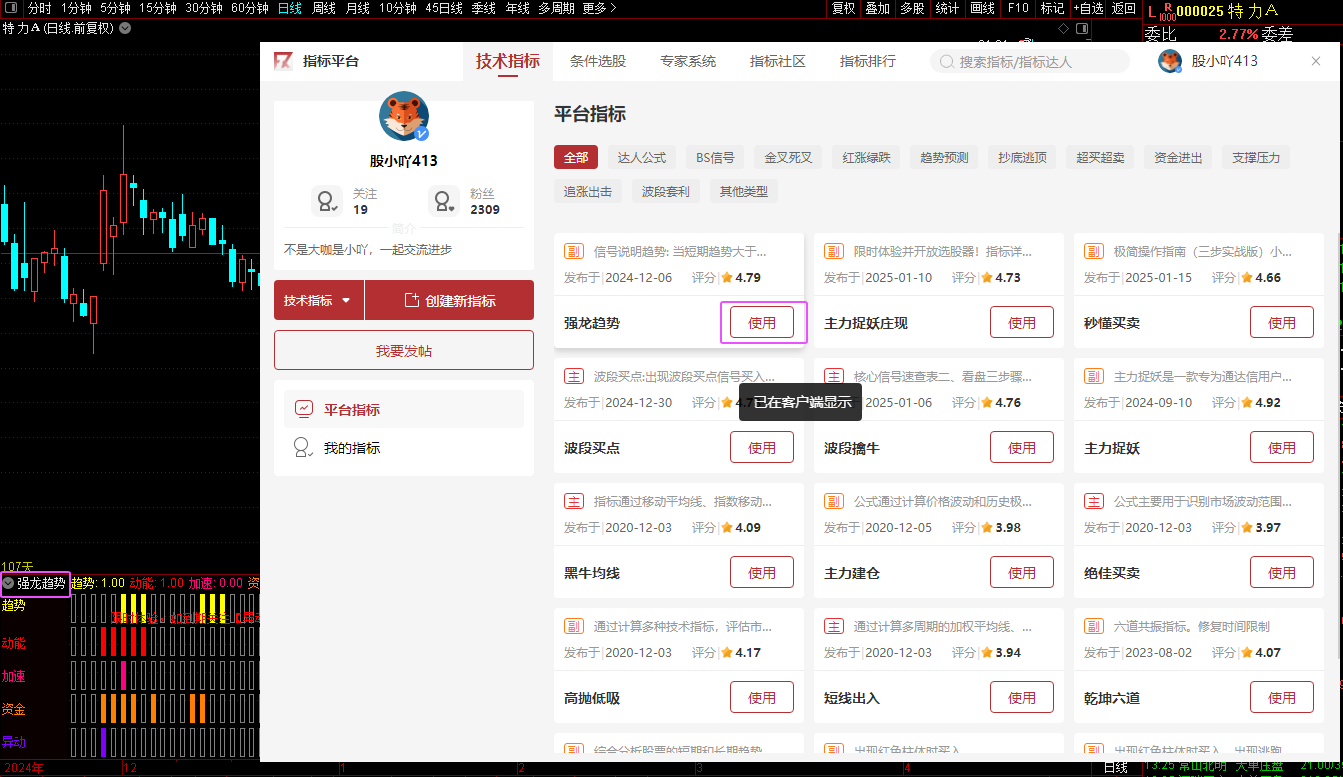 PC,平台指标--选择指标点击使用,就可以在个股k线界面展示对应的指标,