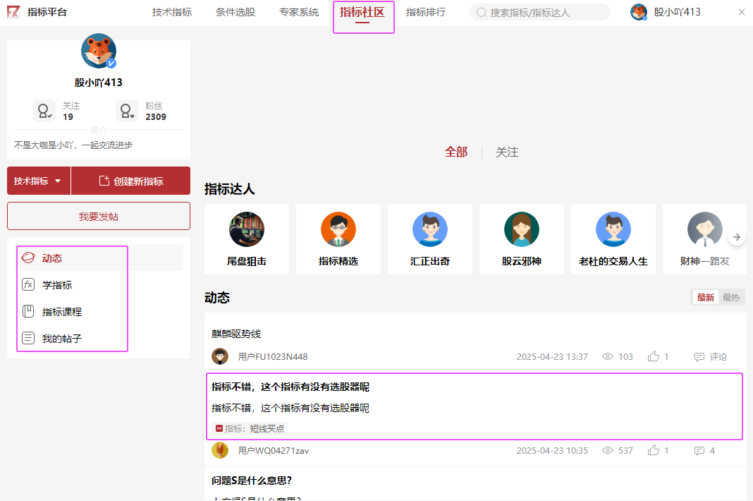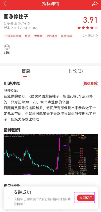 其他人在指标平台搜索公式名可以安装使用达人发布的指标。