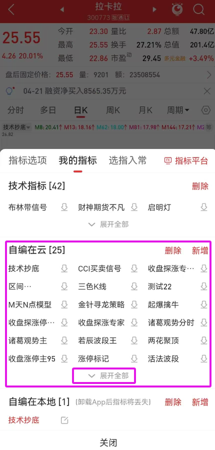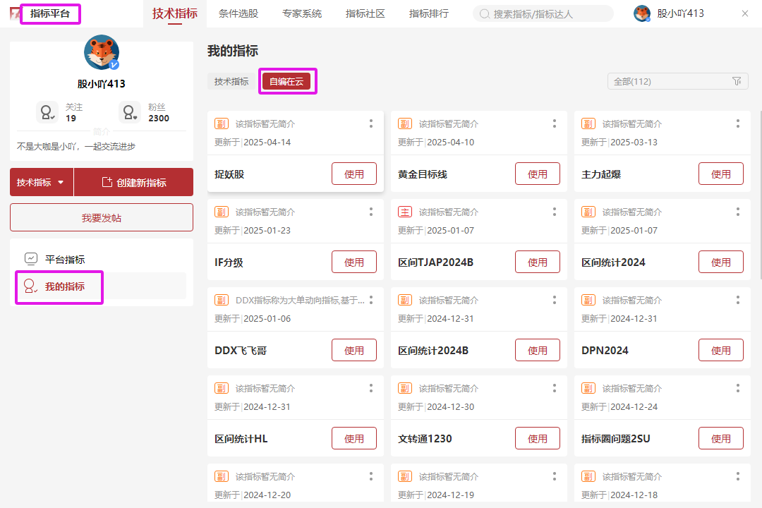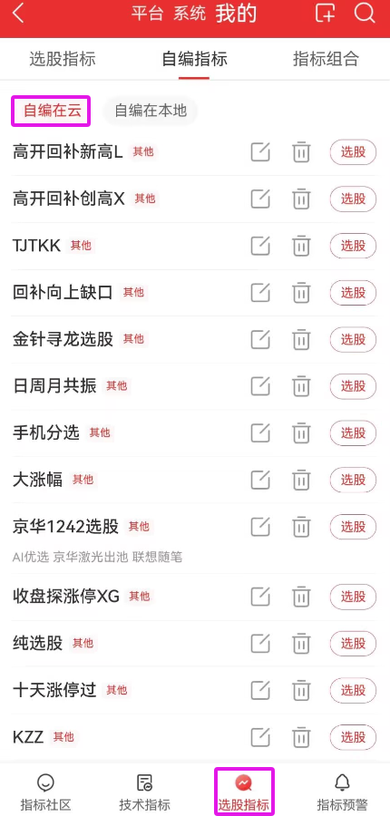 APP,指标平台--技术指标--自编在云,指标平台--选股指标--自编在云