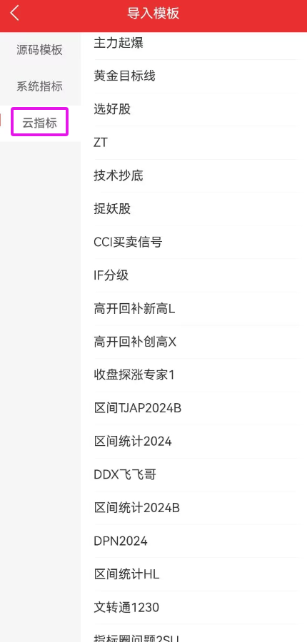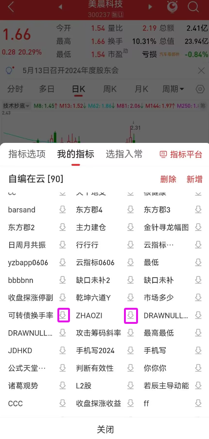APP,如果云公式不在本地时,直接在指标选项里点击下载图标,当时下载就能使用。