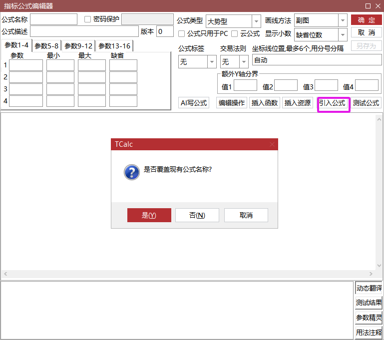 PC,公式管理器编辑内容时支持引入本地所有自定义公式包含下载到本地的自编云公式