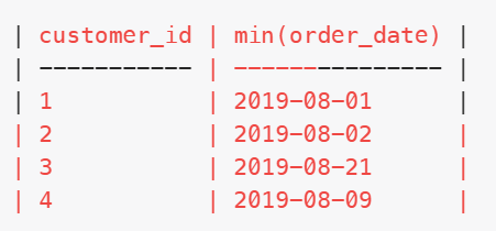 首先我们在查询条件使用一个子查询来规范customer_id(用户id)和order_date(下单时间)的范围,这个子查询主要是查一次原表,跟据用户id进行分组,然后使用min()函数来找出最小的日期,也就是首次下单日期,这样就把用户id和下单时间范围确定下来了(现在的条件就是确定了每个用户的最早下单时间)。