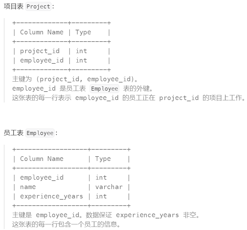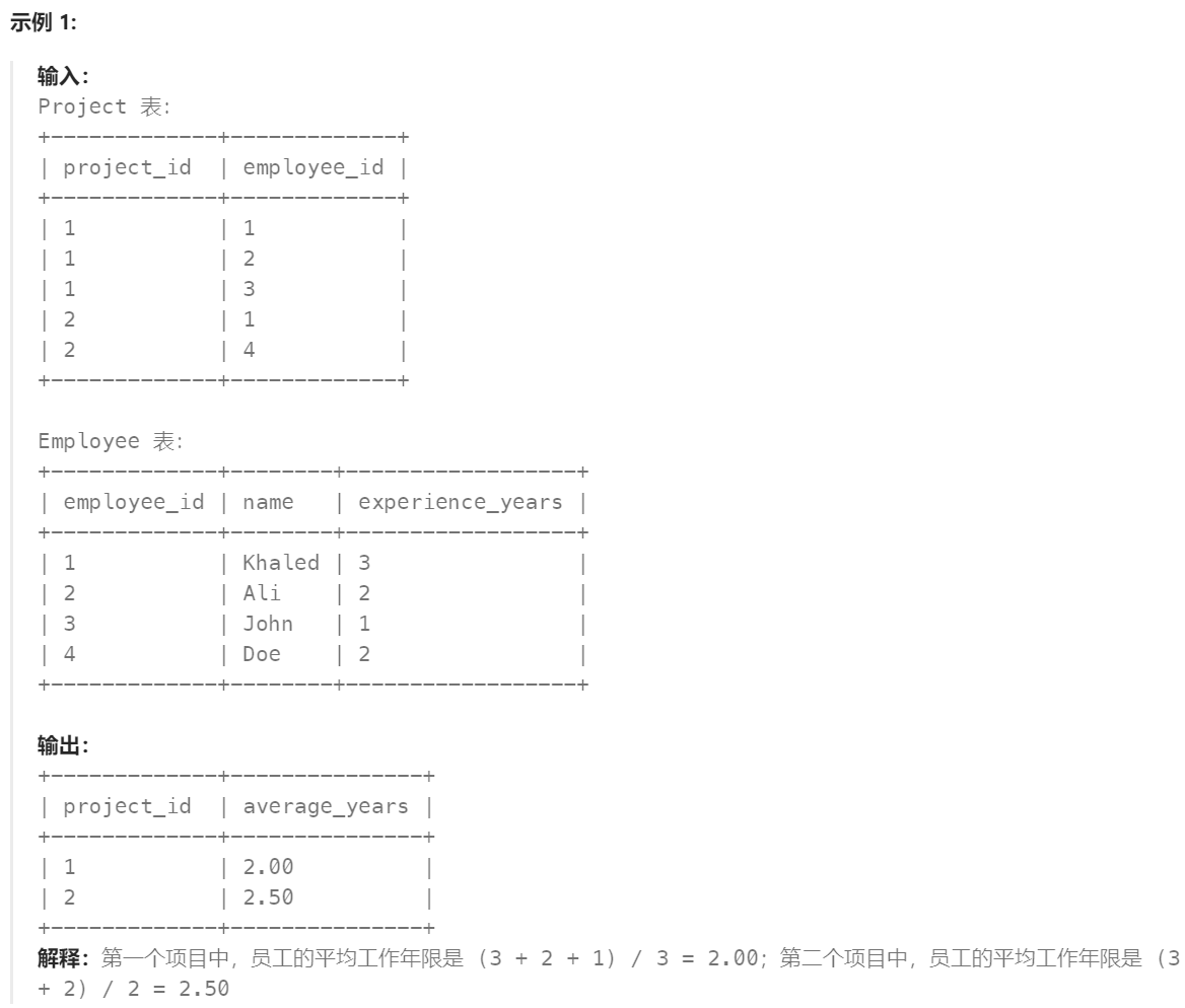就是简单的计算平均值,先进行全连接,然后按project_id分组,最后使用avg()统计experience_years列即可