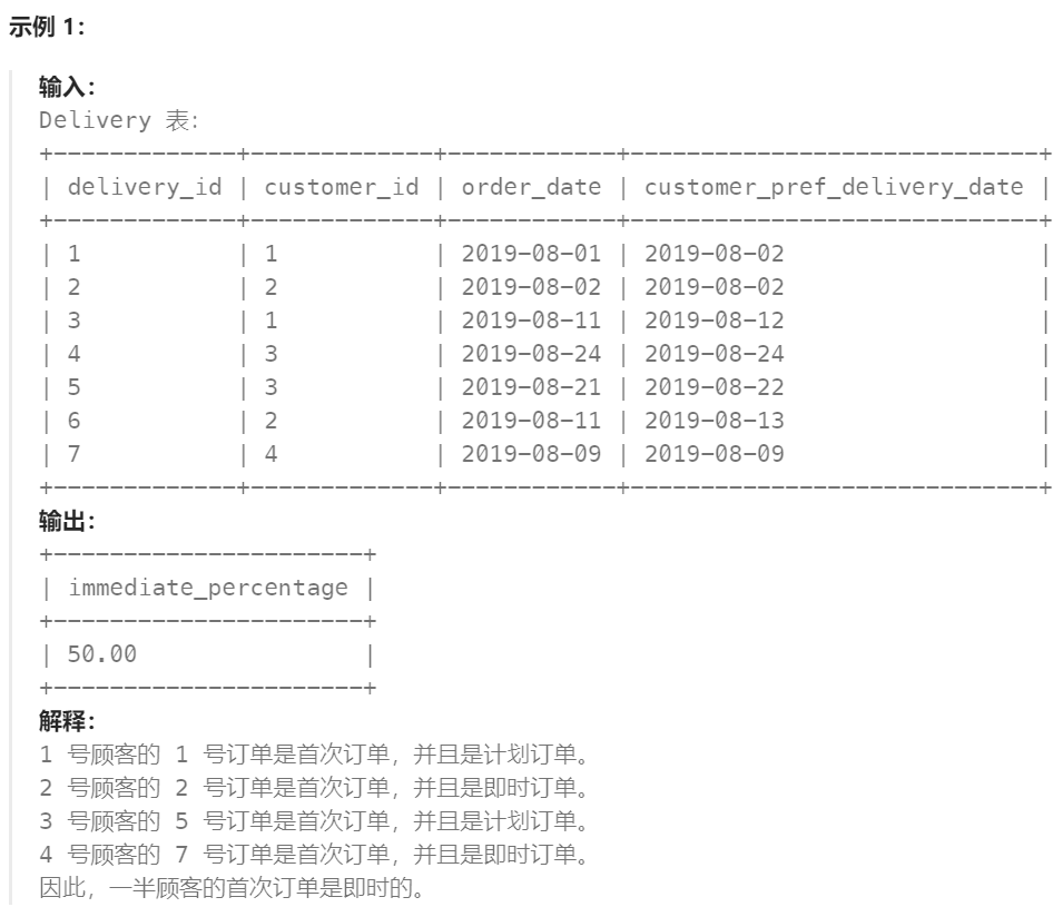 编写解决方案以获取即时订单在所有用户的首次订单中的比例。保留两位小数。