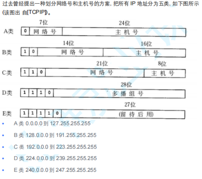 A,B,C类地址是单播地址,D类地址是多播地址,E是保留地址。这类方法的缺点很明显,就是不灵活,浪费(比如说一个局域网只有2台主机,那么你也只能申请C类IP)。优点就是可以很容易地根据IP地址的前几个bit判断该IP地址属于哪一个网络,格式是什么样的。