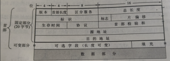 - 填充字段:前面说过首部的长度是4B的整数倍,如果首部长度不够4B的整数倍就需要用填充字段把首部填充到4B的整数倍。