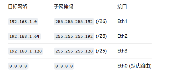当一个数据包来到路由器,会依次按位与路由表中的子网掩码,然后与目标网络比对,如果按位与的结果与目标网络相同,那么就应该把数据包转发到该目标网络对应的接口(只是举个例子,实际上要更复杂)。