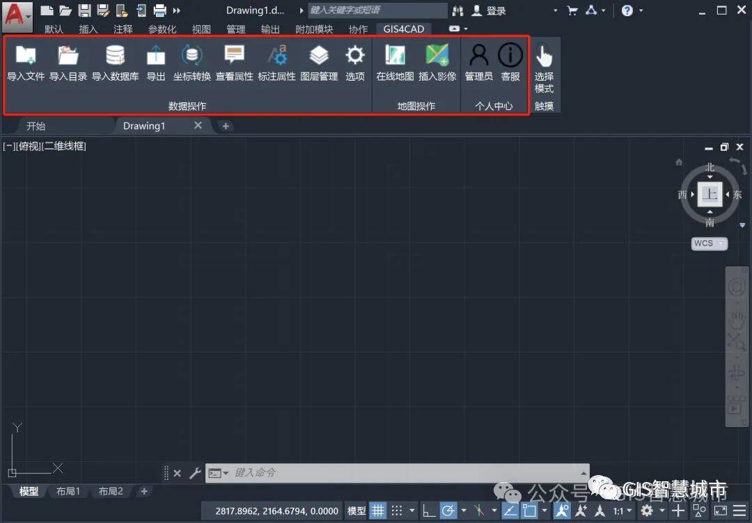 安装成功后在AutoCAD菜单栏的最后会多出一组GIS4CAD菜单项。