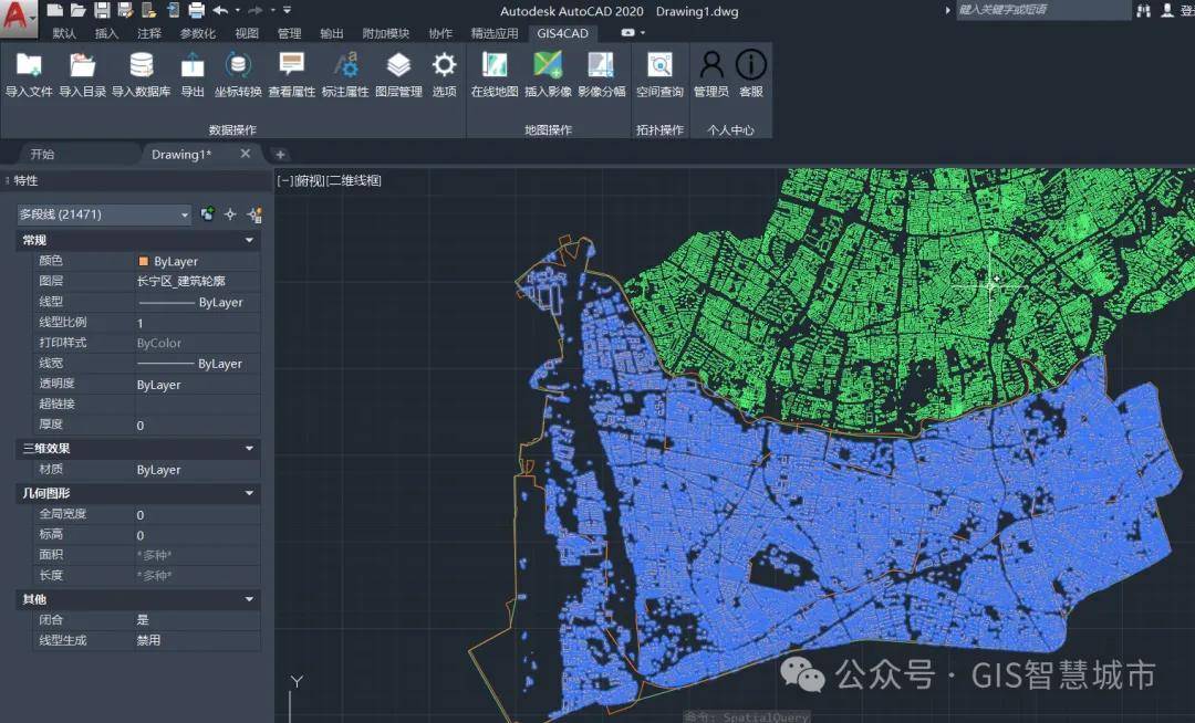 借助GIS4CAD插件,可以在AutoCAD中像ArcGIS一样对图形数据进行空间查询,通过图层间的相交或包含关系,可以根据条件将符合要求的图形快速选中。这样可以快速筛选出符合特定空间位置条件的图形元素,显著提升CAD数据处理的效率和精度。