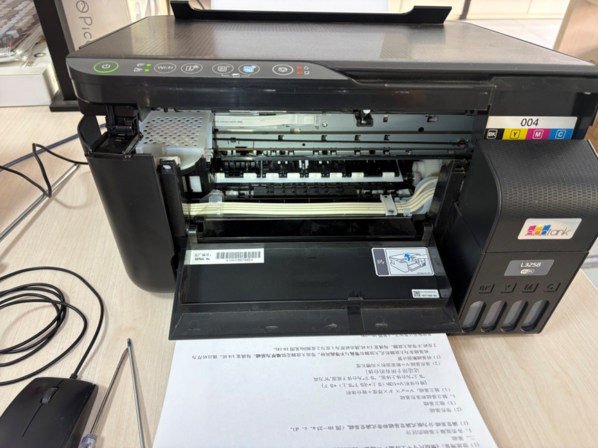 今天遇到的一台爱普生L3258彩色喷墨打印机连续打印五灯齐闪故障的维修