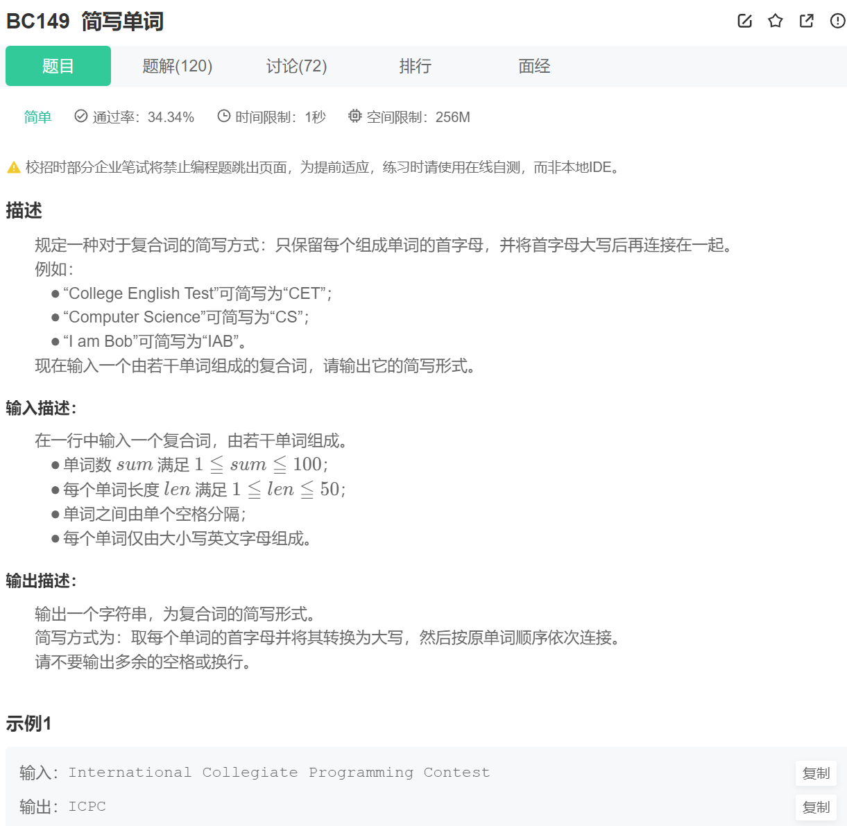 #include <string>using namespace std;int main() {string str;//getline(cin,str)//读一行string ans;while (cin >> str){if (str[0] >= 'a' && str[0] <= 'z'){str[0] -= 32;}ans += str[0];}cout << ans << endl;return 0;