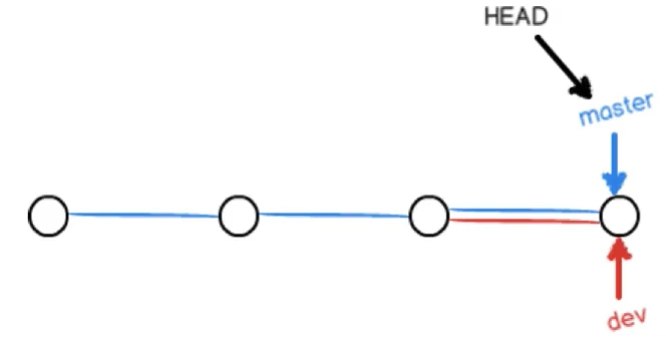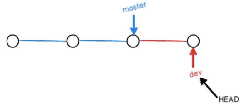 第二张图上我们可以看到创建了dev的分支,当我们切换到dev分支的时候HEAD就会指向dev