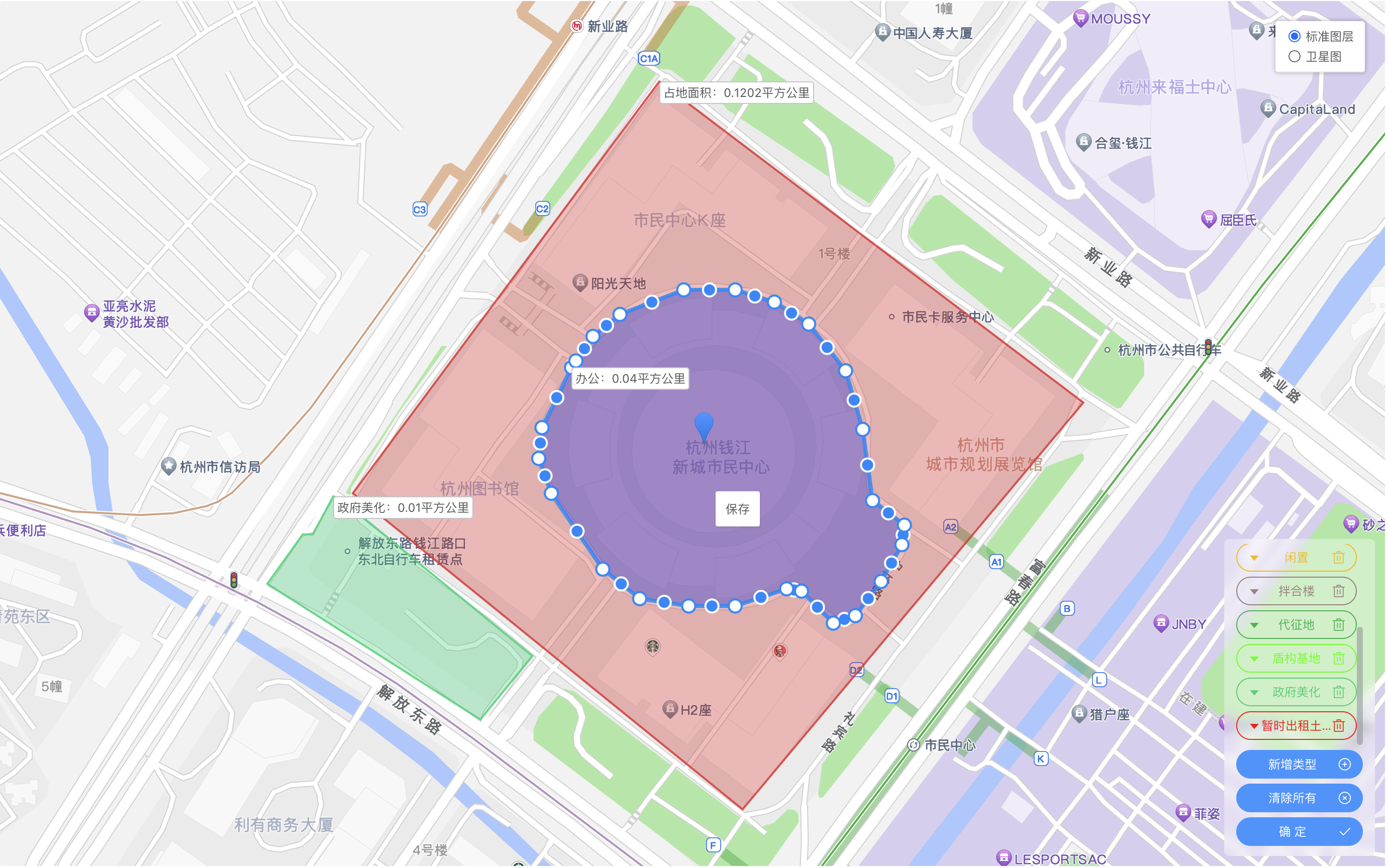 measureAreaOver(e) {// 增加覆盖物右键点击事件e.obj.on('rightclick', this.polygonRightClick);// 增加覆盖物提示文本let { areaName } = this.areaTypeList.find(item => item.areaType == this.areaTypeActive) || {};let textTitle = areaName;let updateData = {};if (!textTitle) {updateData = e.obj.getExtData();textTitle = updateData.areaName;}// 通过时间戳生成唯一标识,仅供前端使用let timer = Number(new Date());e.obj.setExtData(timer);// 将文字标签设置在多边形的第一个点周围let textPosition = e.obj.getPath()[0];let textContent = `${textTitle}:${(e.obj.getArea() / 1000000).toFixed(4)}平方公里`;// 创建文字标签var text = new AMap.Text({text: textContent,position: textPosition,style: {'font-size': '12px',},extData: timer,});text.setMap(this.map);// 将覆盖物信息整合加入到全局let area = this.areaTypeList.find(item => item.areaType == this.areaTypeActive) || {};area = {...updateData,...area,area: e.obj.getArea(),path: e.obj.getPath(),data: e.obj,type: 'polygon',};this.areaList.push(area);this.areaTypeActive = '';// 关闭创建多边形if (this.mouseTool) this.mouseTool.close();
