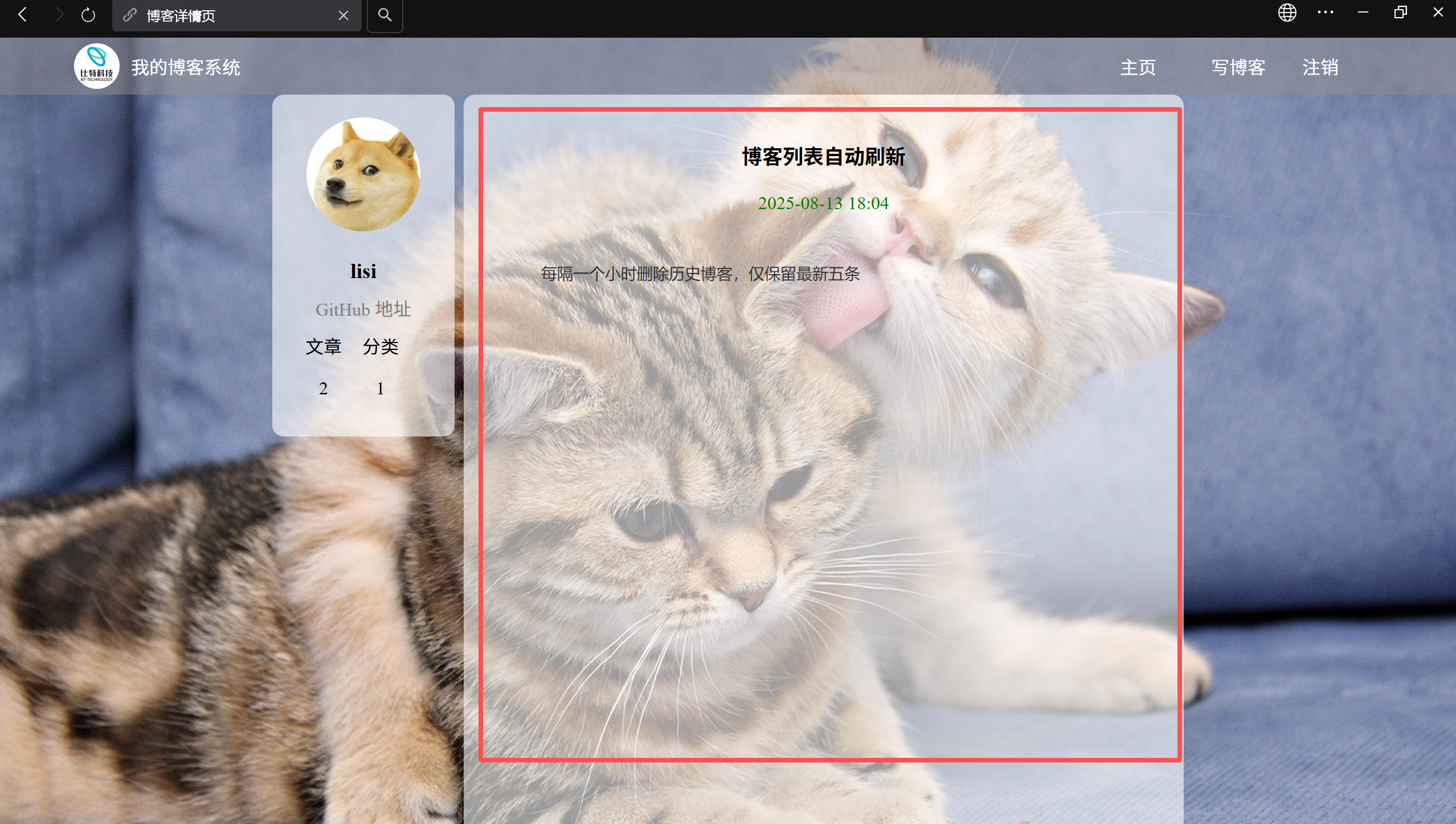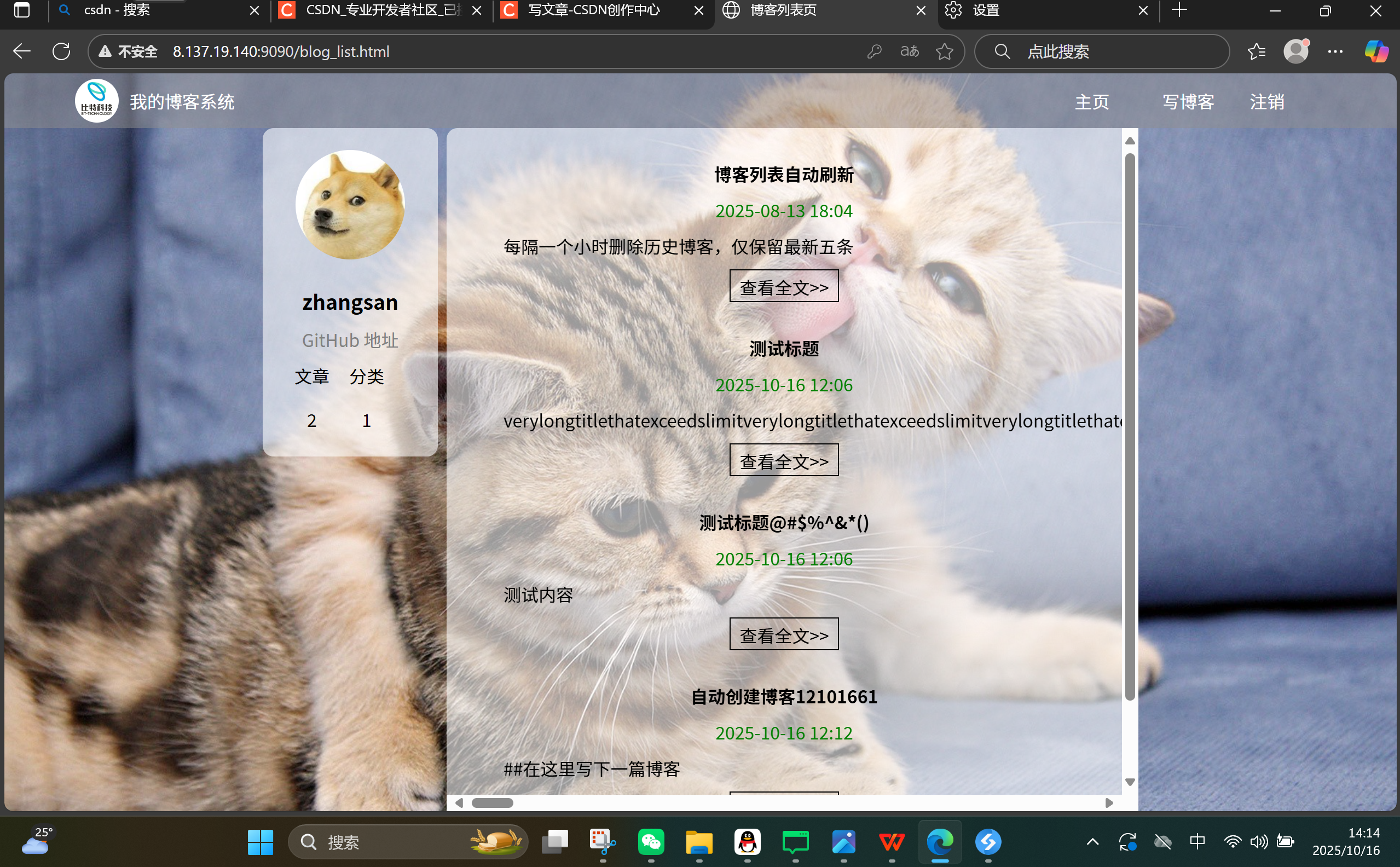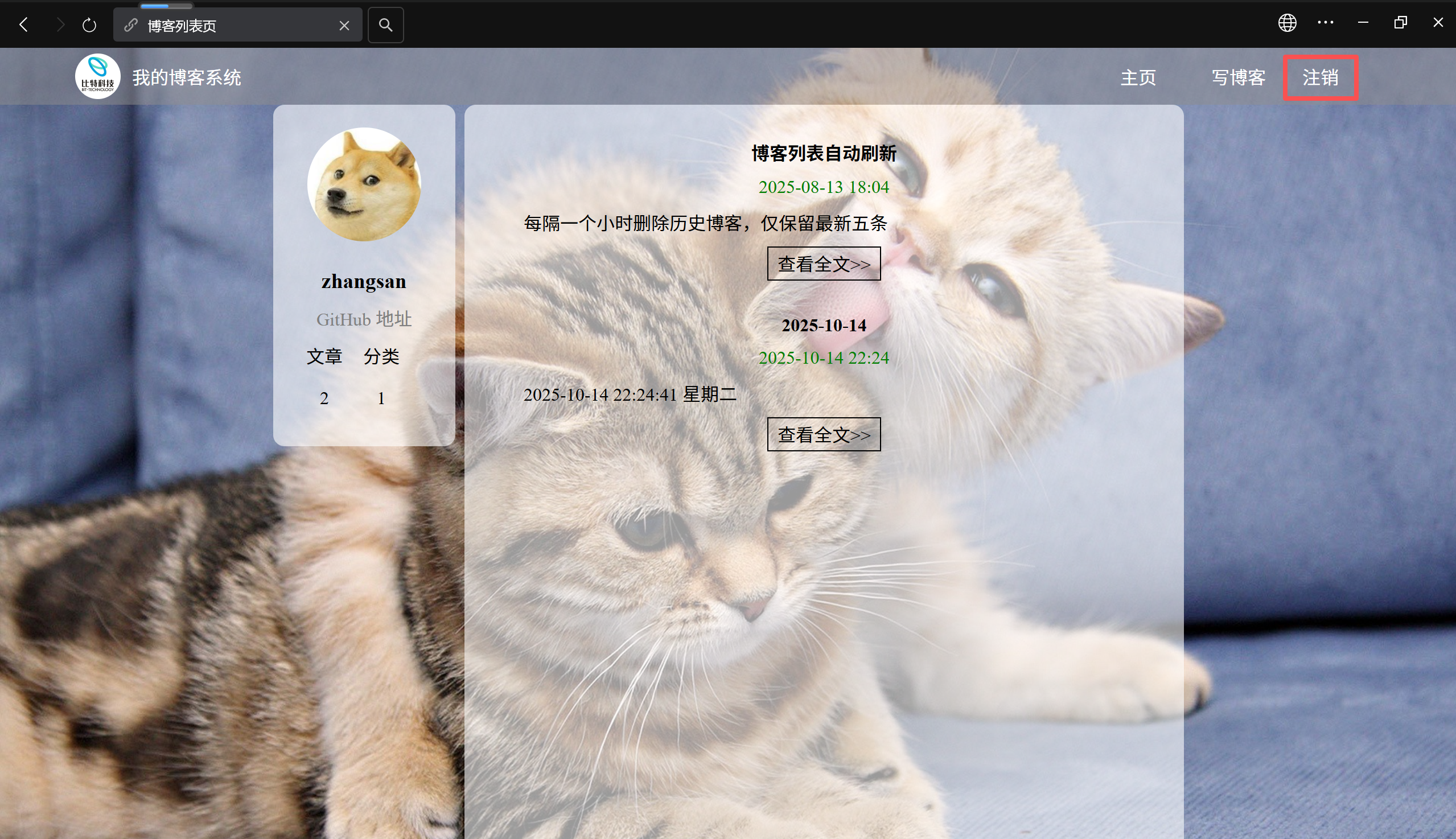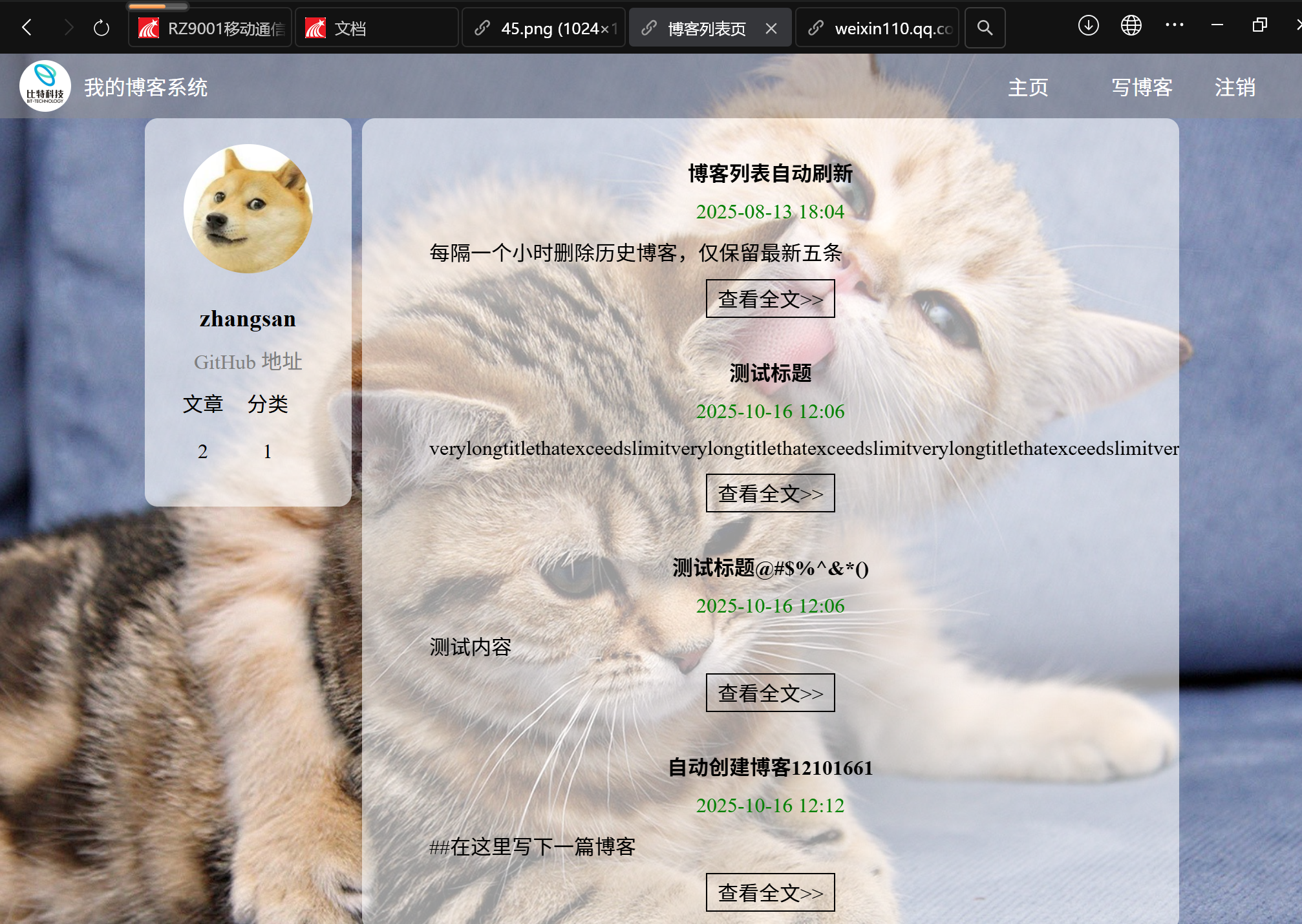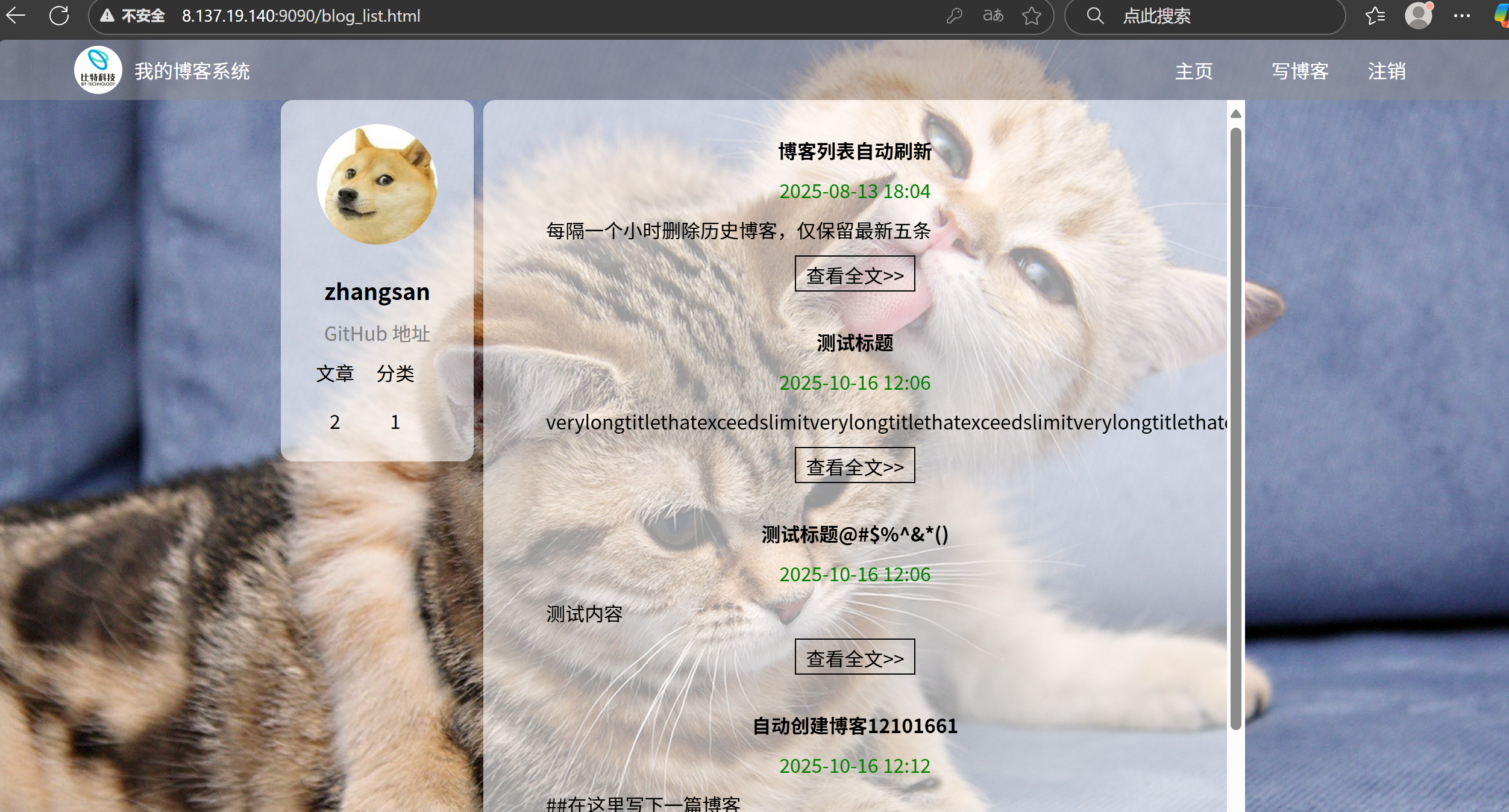 主页功能:能正确列出所有编辑且发布过的博客,实现内容展示的完整性;