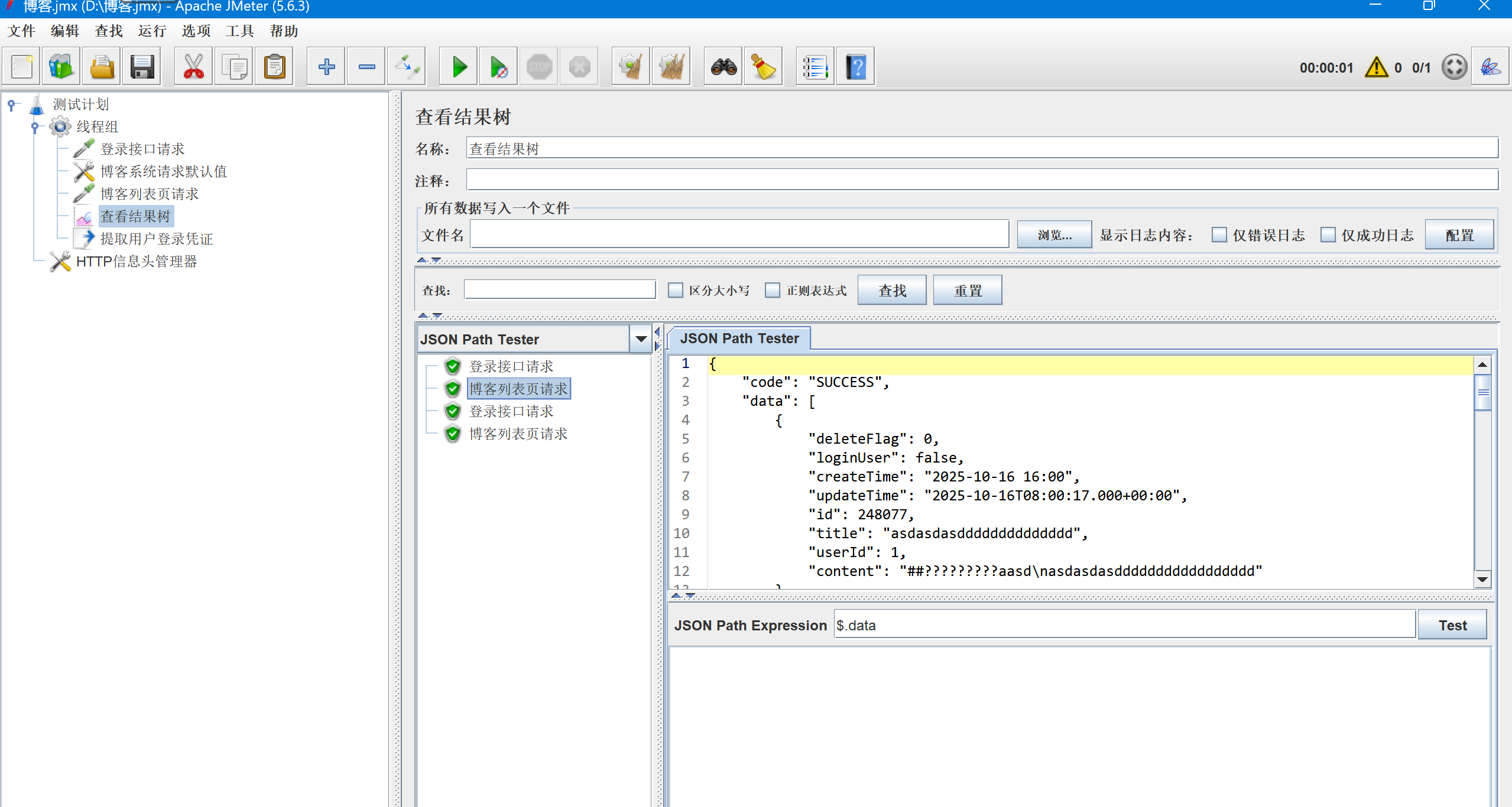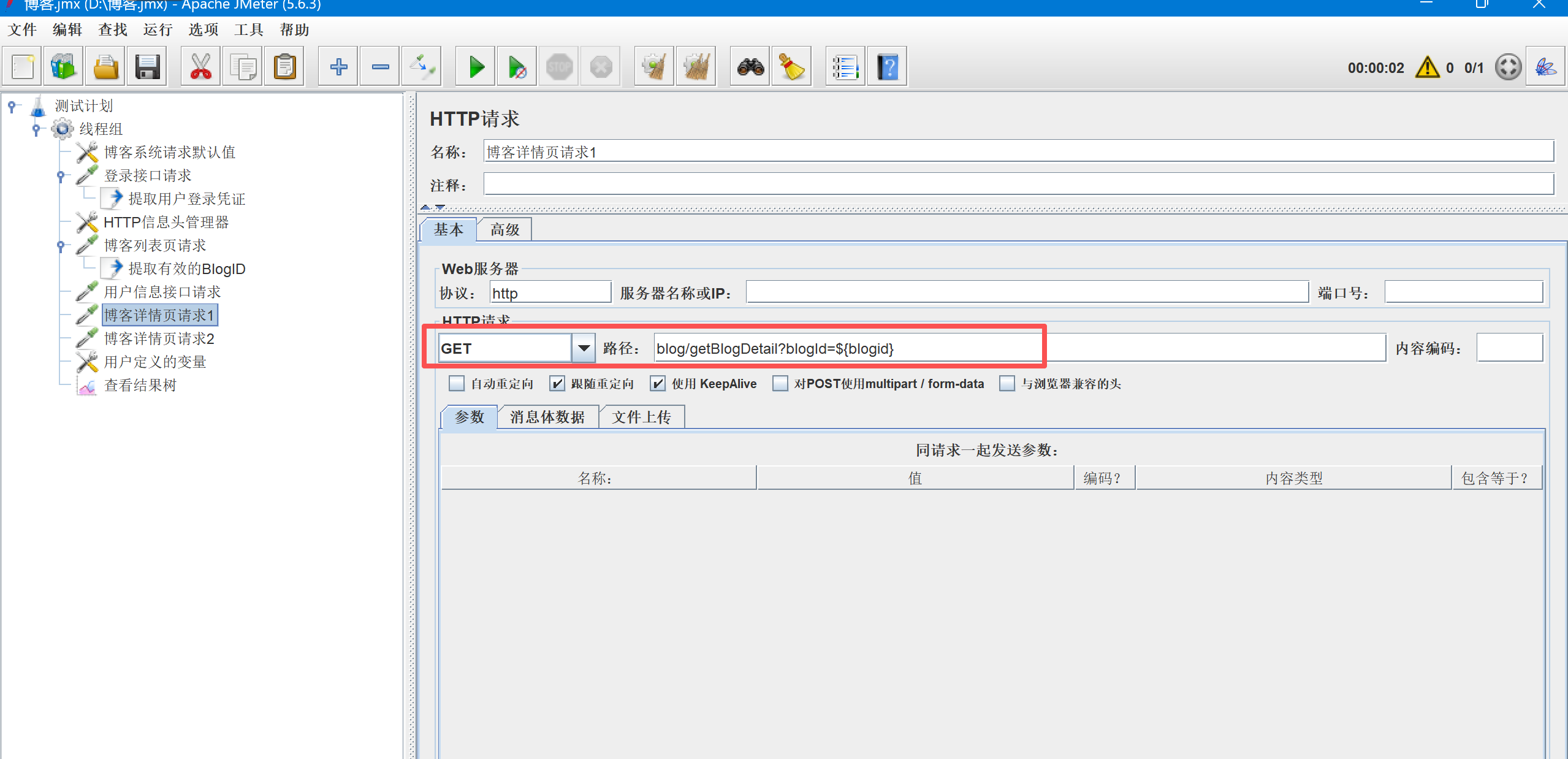 我们就可以提取用户列表中的博客ID,加入信息头管理器。