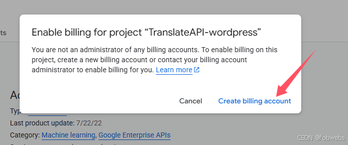 启用后,如果谷歌账号没有付款账户的话,会要求创建付款账户,如下图: