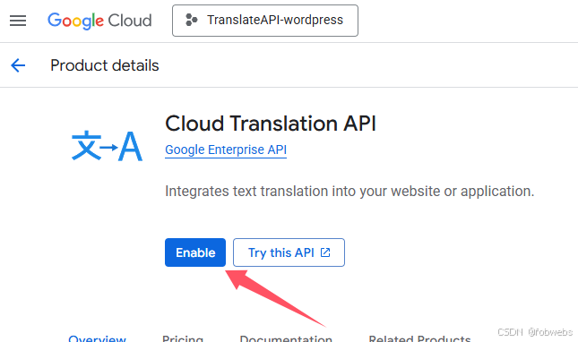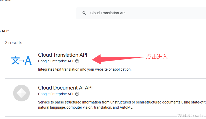 搜索 Cloud Translation API 并启用:
