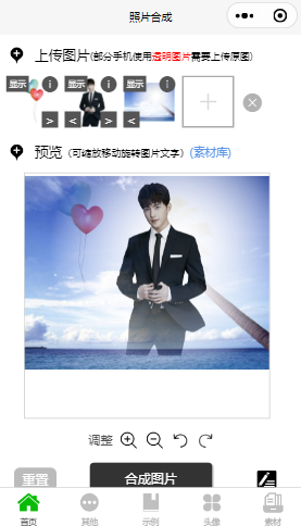 保存图片,还可以点击使用按钮,去其他页面和其他图片合成