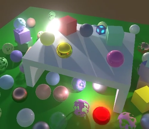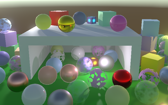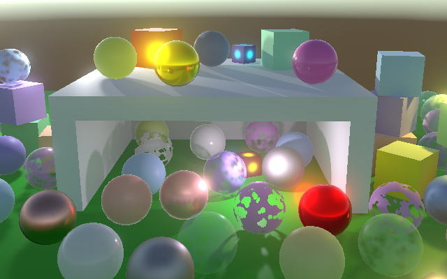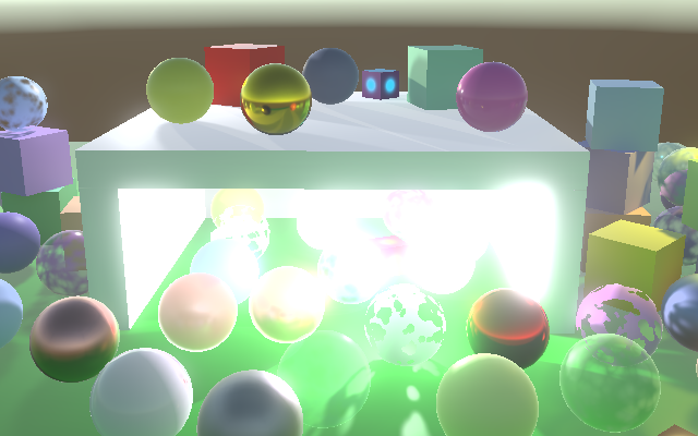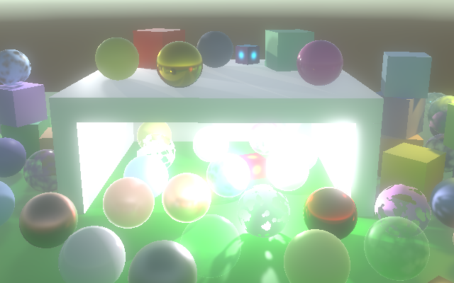 当反射探针使用HDR时,它可以包含高强度颜色(主要是其捕获的镜面反射)。您可以通过场景中这些颜色引起的反射间接观察它们。不完美的反射会减弱探针的颜色,这使得HDR值更加突出。