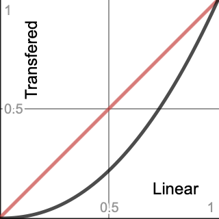 sRGB格式使用非线性传输函数。显示器会对此进行调节,执行所谓的伽马校正。伽马校正函数通常近似为原色(尽管实际传输函数略有不同)。