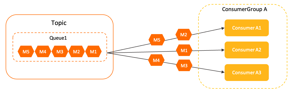 消费者分组不是一个运行实体,而是一个逻辑资源。通过消费者分组内初始化多个消费者实现消费能力的水平扩展和高可用容灾。