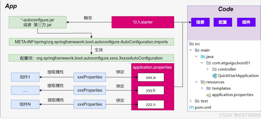 - *-spring-boot-starter: 第三方为我们提供的简化开发的场景启动器