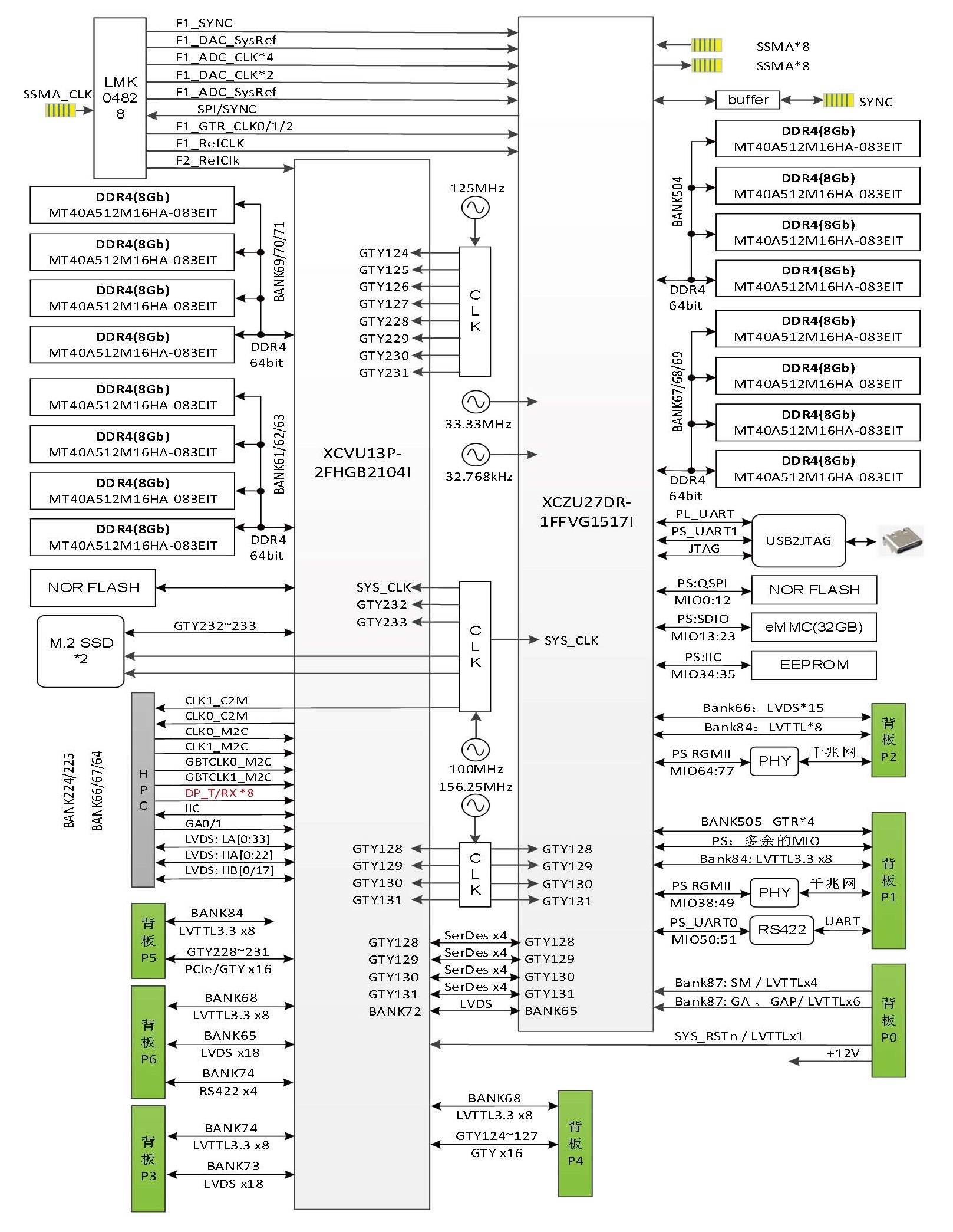 3) FPGA 外扩2 组DDR4 存储器,每组4GB;