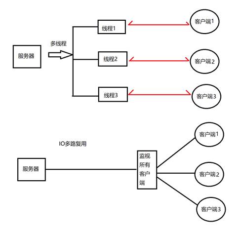 IO多路复用与多线程服务器的区别