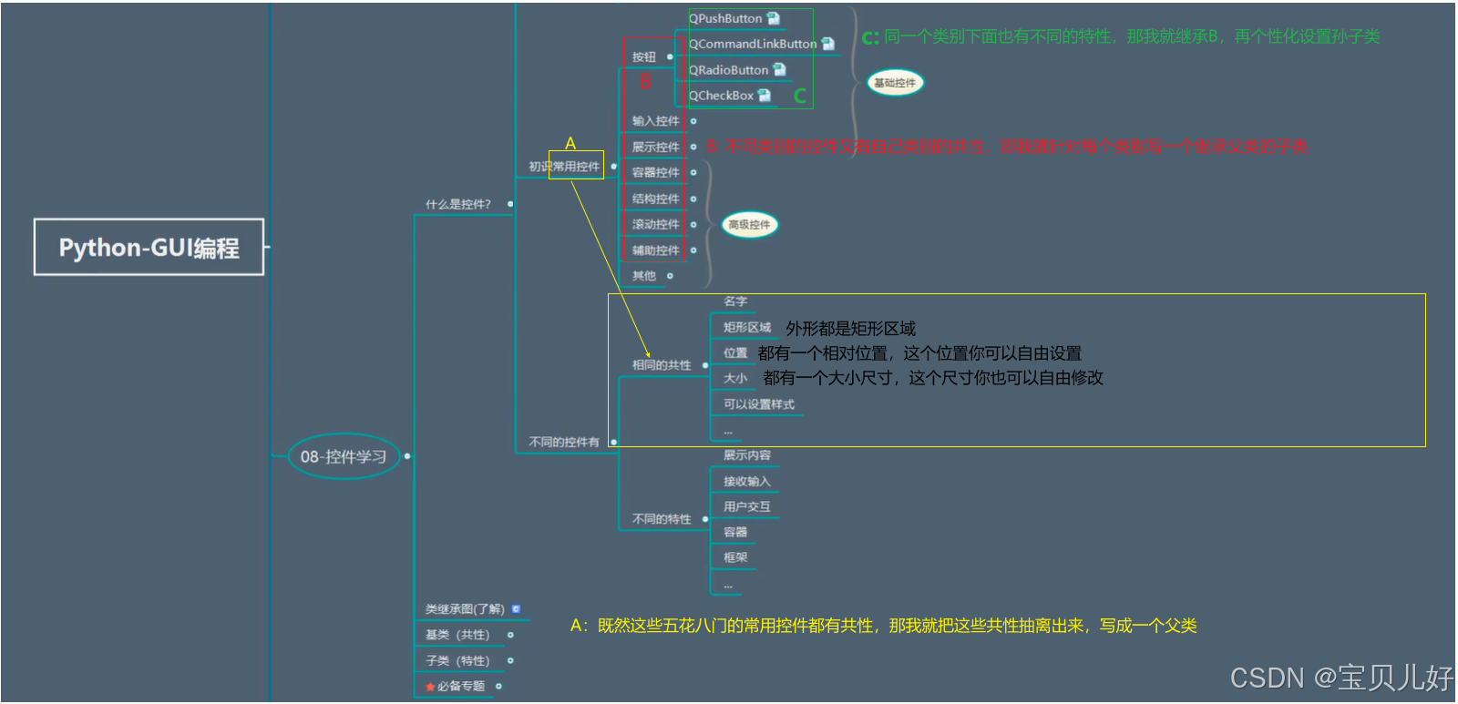 前面认识各种类型控件后,我们就可以调包实现了,但是现实总是五花八门的,有人喜欢红色边框有人喜欢蓝色边框,有人喜欢宋体有人喜欢楷书....所以我们还得会个性化设置每个控件的特定属性和功能。而个性化设置控件,就要用到面向对象编码,具体说就是要用到类的继承、多态、重载等底层逻辑。
