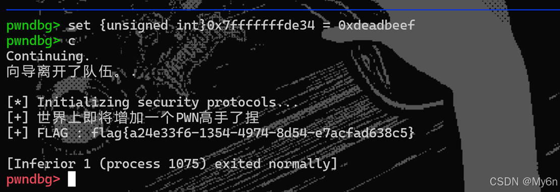 set {unsigned int}0x7fffffffde34 = 0xdeadbeef