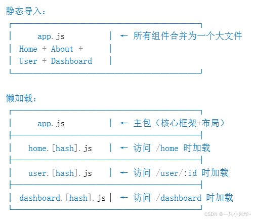图1:静态导入 vs 懒加载 打包结构