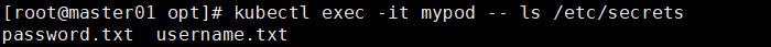 kubectl exec -it mypod -- ls /etc/secrets
