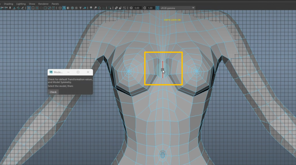 选择胸中间对称的地方点一下, 这样左右对称就完成了