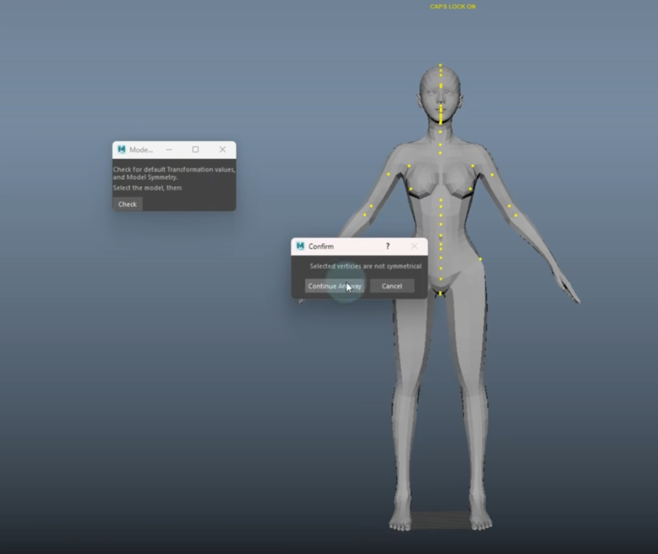 下面这个模型有不对称, 点击 continue.. 那个按钮, 下图 黄色的点就是不对称的点