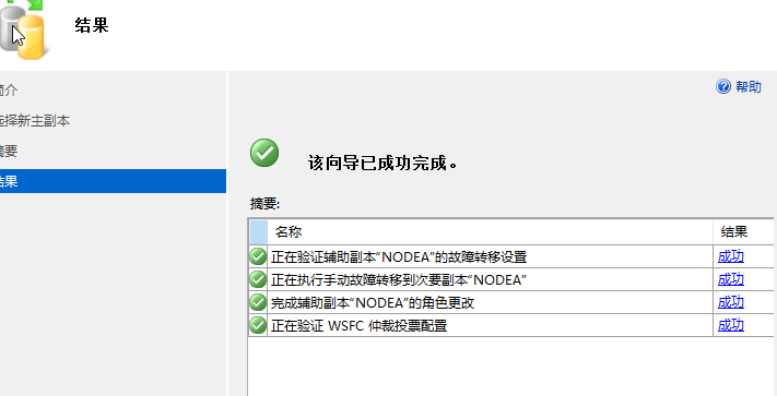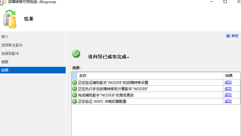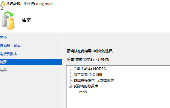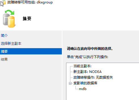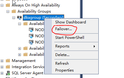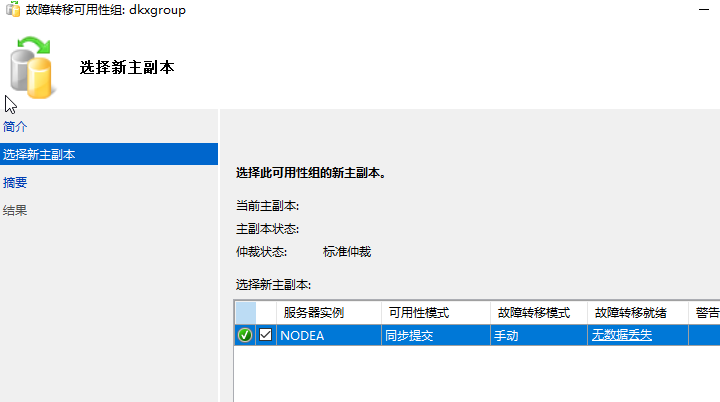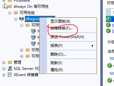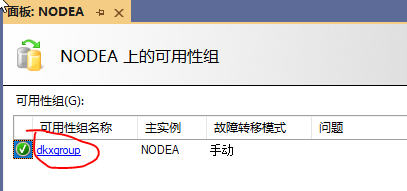 在nodea辅助副本,右键dkxgroup选择故障转移,只能选择自己为新主