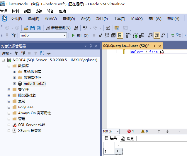 查看辅助副本,辅助副本是可读的,在主副本上对MDB数据库做的更改都能同步到辅助副本上的MDB库。