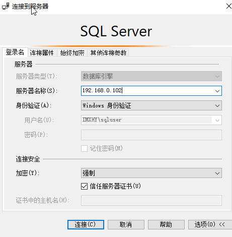 重新使用imxhy.com域账户,windiws身份认证登陆sqlserver