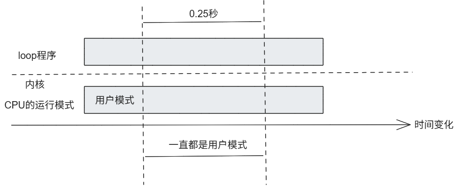 接下来我们尝试一个不发起任何系统调用,只是单纯的执行循环的程序,并通过sar命令查看它在个模式下的运行时间