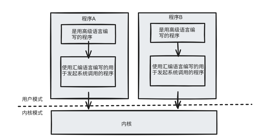 如果没有OS的帮助,程序员就要根据系统架构为每一个系统调用编写相应的汇编语言代码,然后再从高级编程语言中调用这些代码